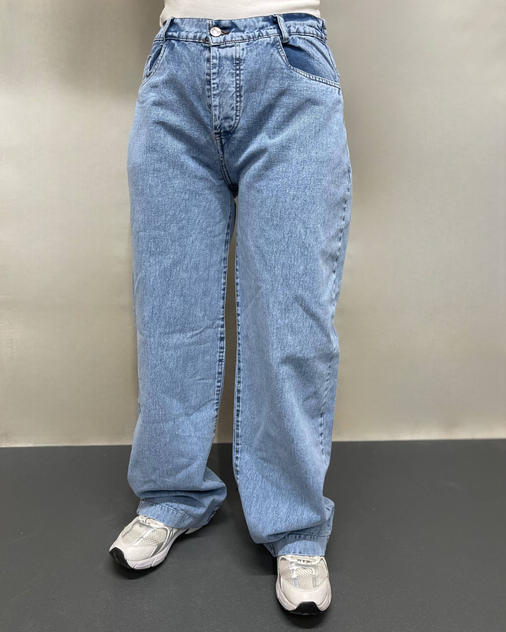 شلوار جین نیم بگ آبی 190573